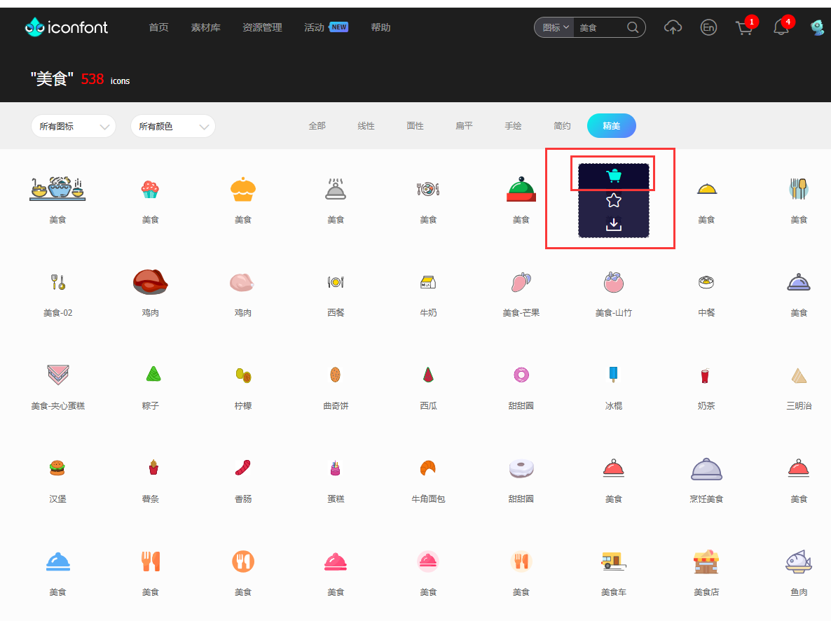 二、选中想要的图标,加入购物车,可以选择多个