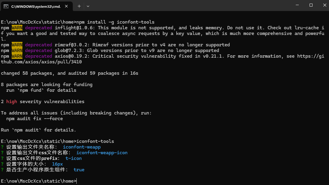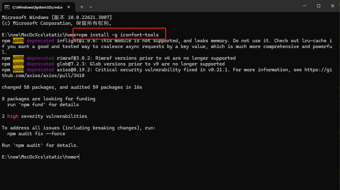 2)输入命令下载插件:npm install -g iconfont-tools