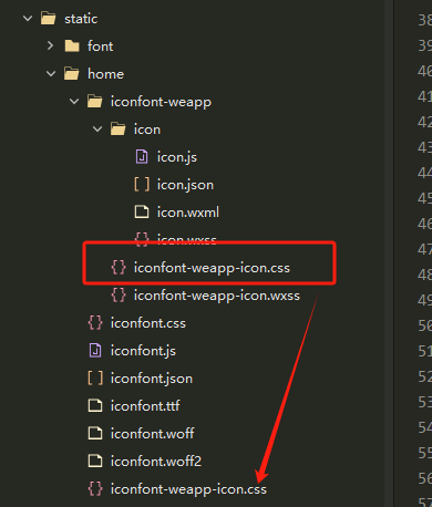 4)在文件夹中找到iconfont-webapp-icon.css文件,和本文档第四大点第二小点的文件放一起就行