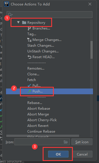 4、按步骤找到Push,一直点OK-Apply-OK