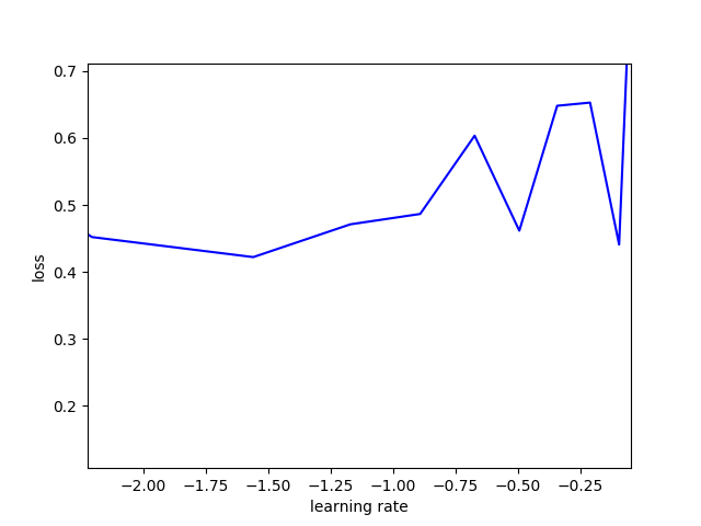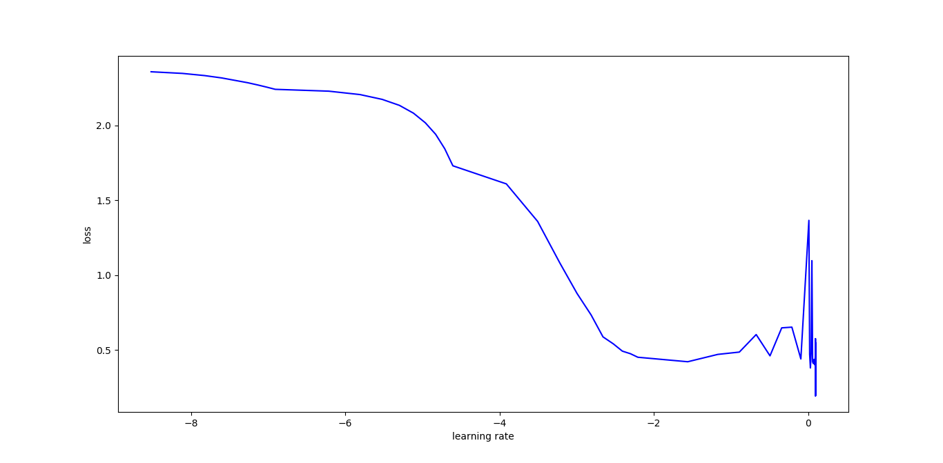 由于我们不能够盲目的调节神经网络的参数,所以首先进行了最优学习率的搜索。