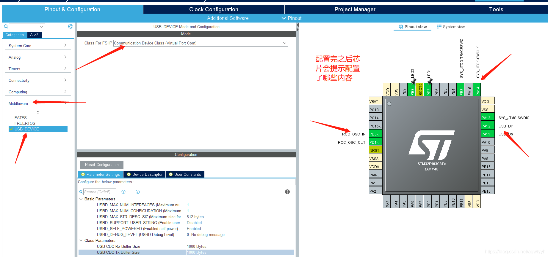 Visual Studio 开发STM32实现USB虚拟串口功能——方法2 使用stm32CubeMX完成USB配置