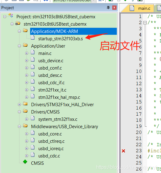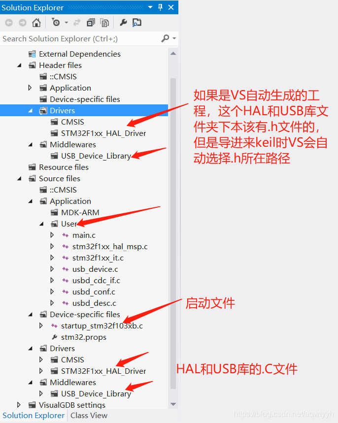 方法2:使用stm32CubeMX自动完成USB虚拟串口的配置,并生成可以用keil打开的工程,然后将keil工程用visual studio打开并编辑