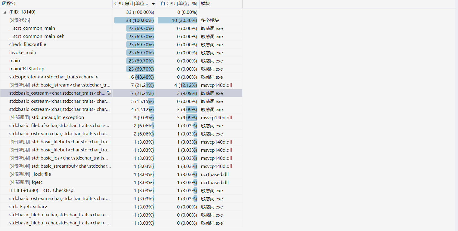 (2.2)计算模块接口部分的性能改进。记录在改进计算模块性能上所花费的时间,描述你改进的思路,并展示一张性能分析图(由VS 2019、JProfiler或者Jetbrains系列IDE自带的Profiler的性能分析工具自动生成),并展示你程序中消耗最大的函数。(12')