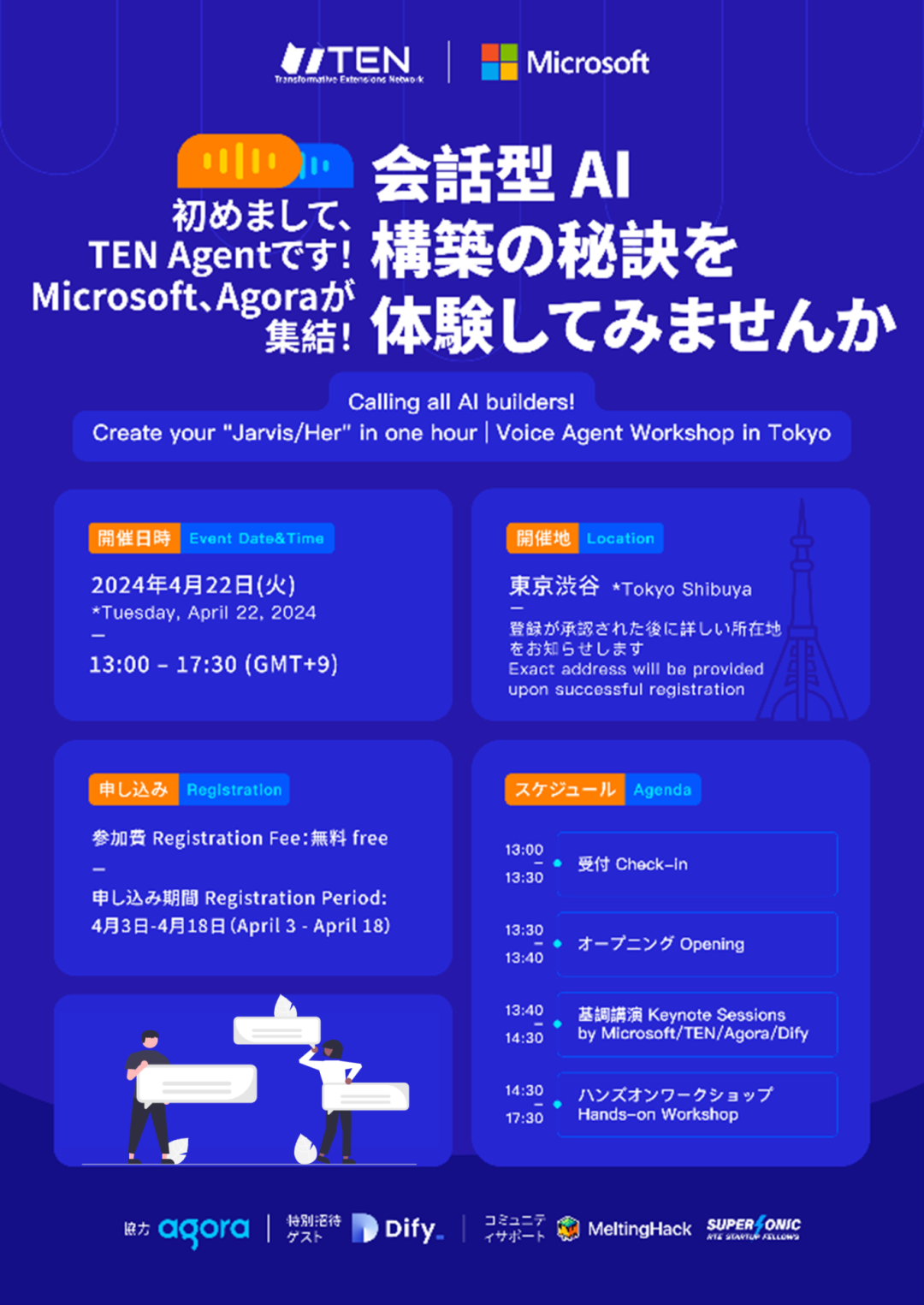 本活动由 TEN Framework 与 Microsoft 联合主办,Agora 协办,特邀 Dify 社区成员,社区支持 MeltingHack、Supersonic。