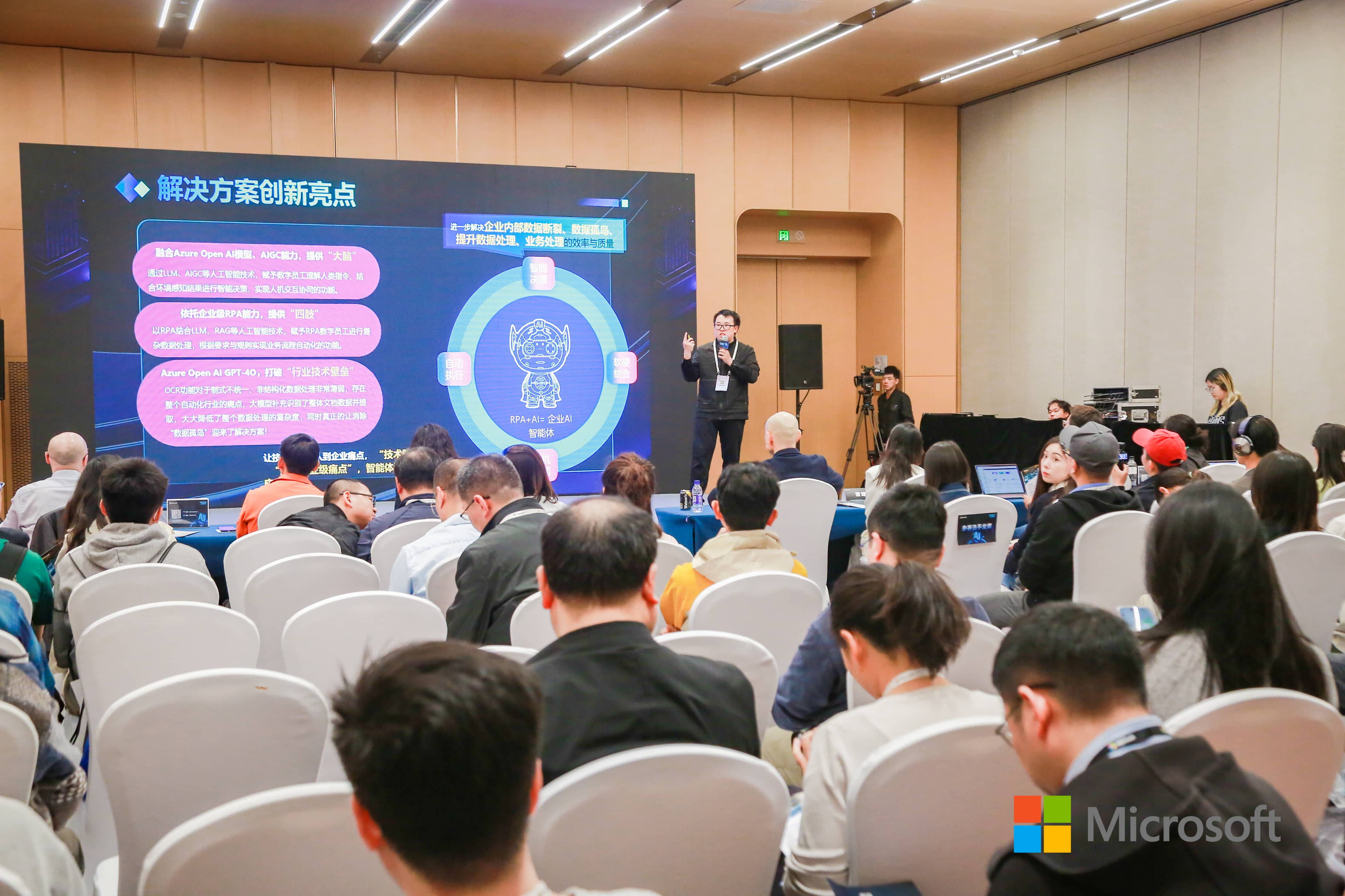 - “大脑”:融合 Azure Open AI 模型、AIGC 能力,赋予数字员工理解人类指令、结合环境感知结果进行智能决策、实现人机交互协同的功能。