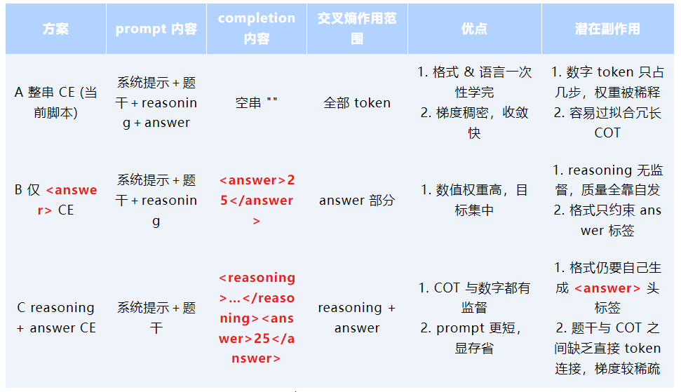 - 任务对“推理链”可解释性要求高吗? 先 SFT(教会标签格式)再 RL(提升正确率)更容易满足可解释输出。