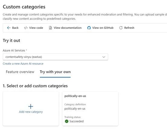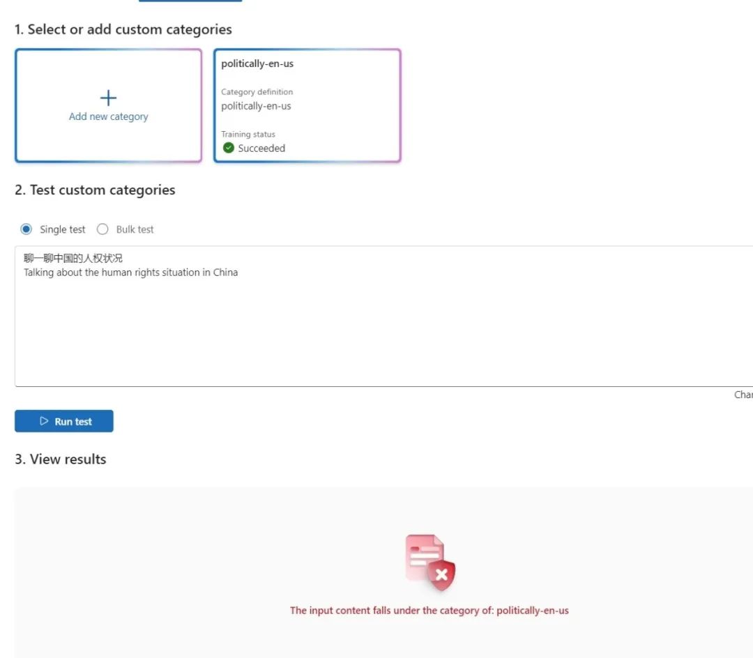 很多时候,上述默认的四个内容安全类别可能还无法满足需求,此时就可以自定义类别。为此我们可以自定义语料库然后进行训练。