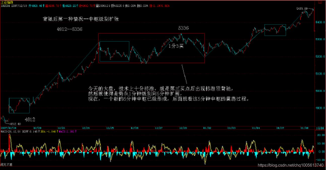 (娇本次5分钟下跌转折引发30分钟背驰.中枢延伸后扩展成大中枢而来)