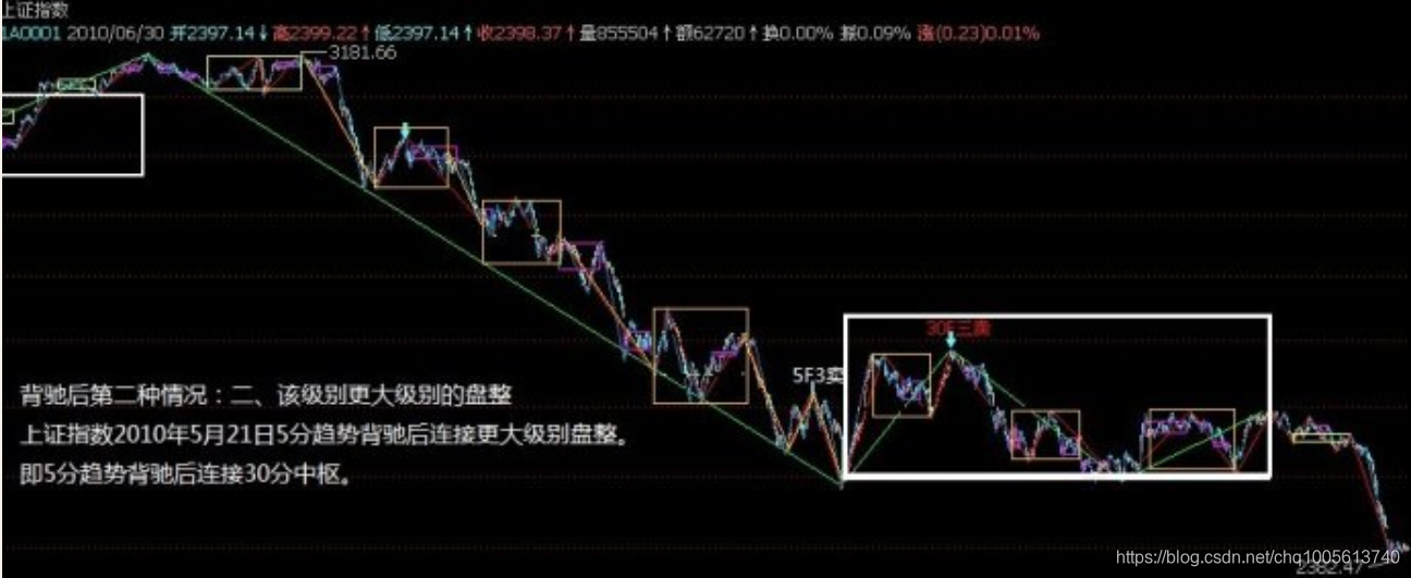 缠中说禅背驰-转折定理:某级别趋势的背驰将导致该趋势最后一个中枢的级别扩展、该级别更大级别的盘整或该级别以上级别的反趋势。