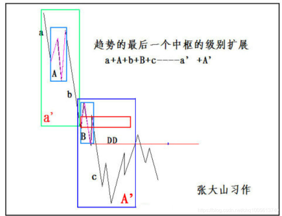 (娇;背驰后中枢扩展是绝对的,但是扩展不一定是只碰到DD。碰到ZD也是前中枢扩展。背驰只保证扩展出现大中枢,后面的变化基于大中枢。是当下合力决定---新大中枢延伸新生扩展)