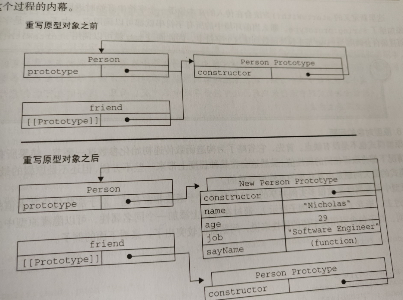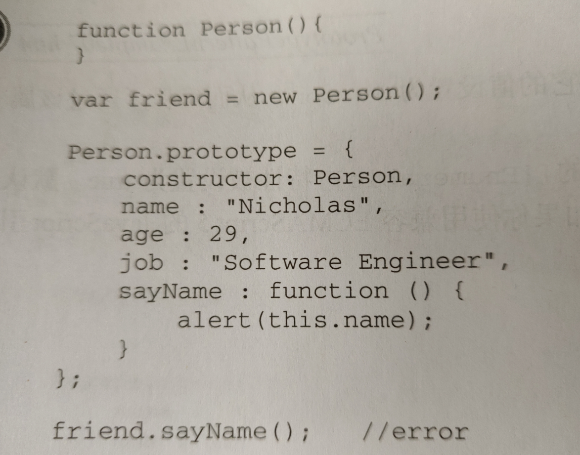 重写原型对象切断了现有原型与任何之前已经存在的对象实例之间的联系。因此要先设置原型 ,再声明实例