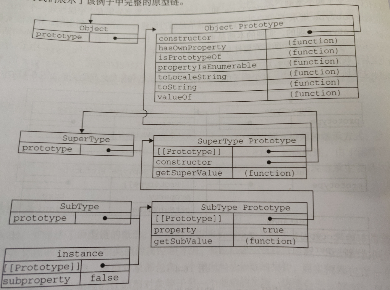// 都为true instance instanceof Object instance instanceof SuperType instance instanceof SubType Object.prototype.isPrototypeOf(instance) SuperType.prototype.isPrototypeOf(instance) SubType.prototype.isPrototypeOf(instance)