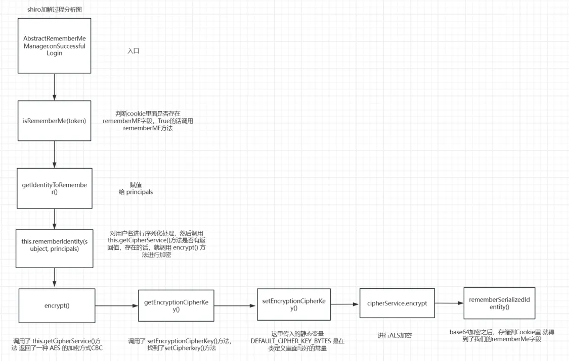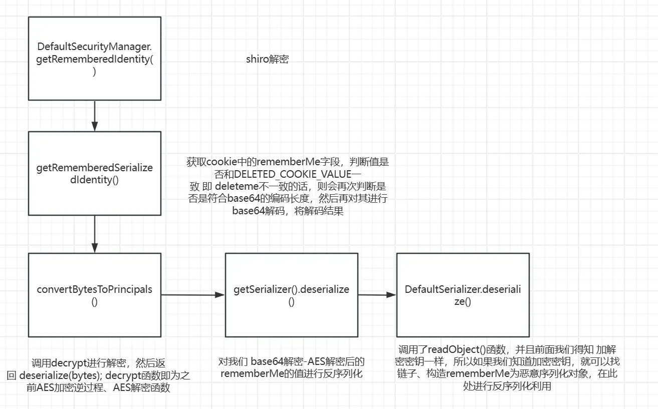 shiro默认使用了CookieRememberMeManager,shiro处理cookie流程是: