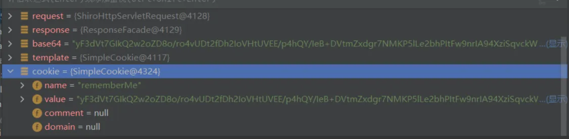 进行base64加密之后,存储到Cookie里 就得到了我们的rememberMe字段