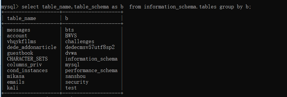将table_schema作为b后,并且将其进行分组后: