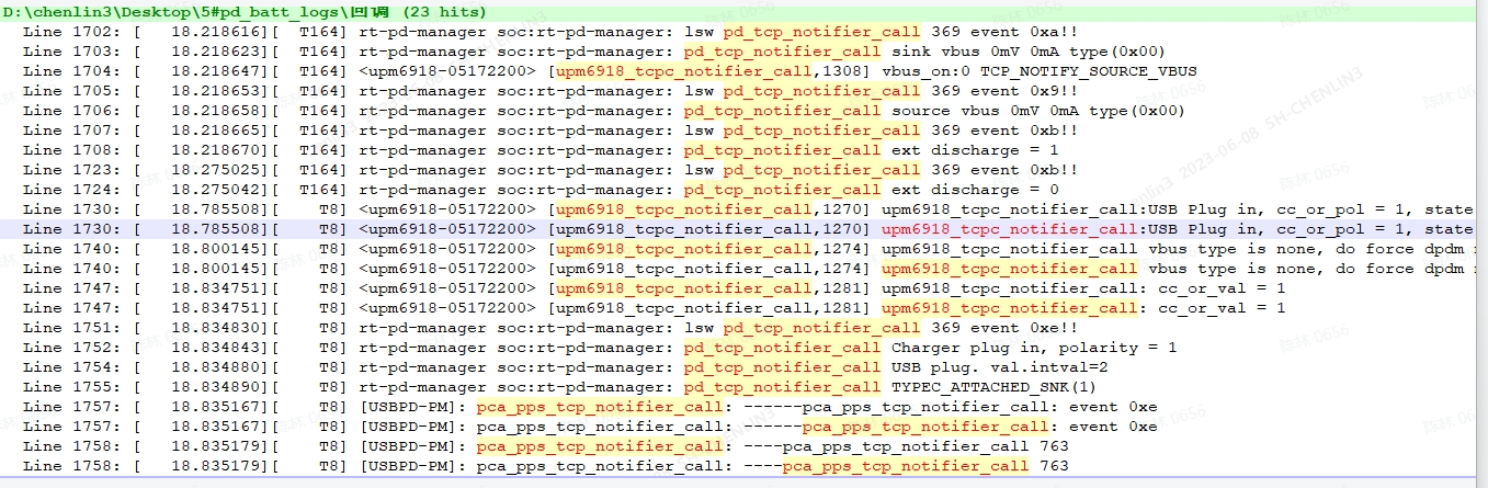 pd协议包中适配器source端发送ps_rdy消息,准确讲是tcpc通讯完成,pd也是会注册通知块接收事件去执行,搜索三个回调函数是否有打印log