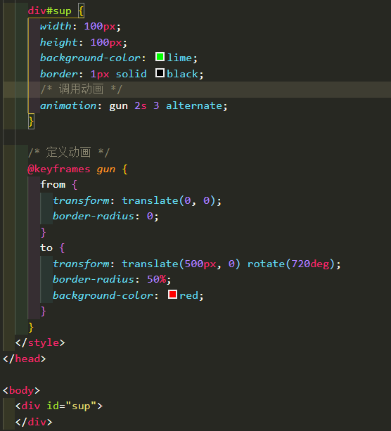 在css3中,动画和js的函数使用比较类似: