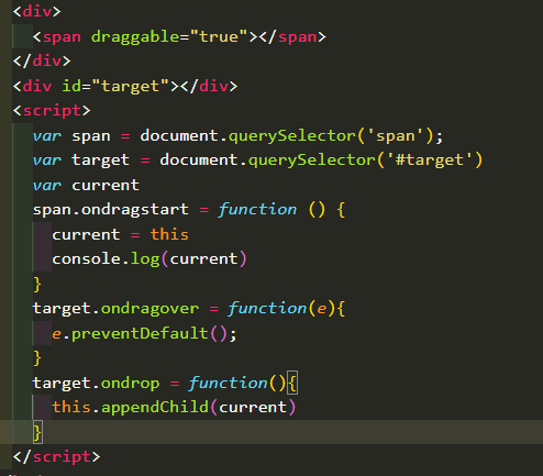 如果需要被拖拽,需要给元素设置一个属性draggable = ‘true’