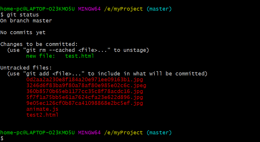 查看项目内各文件状态,红色表示存储在工作区,绿色表示已经提交到了暂存区