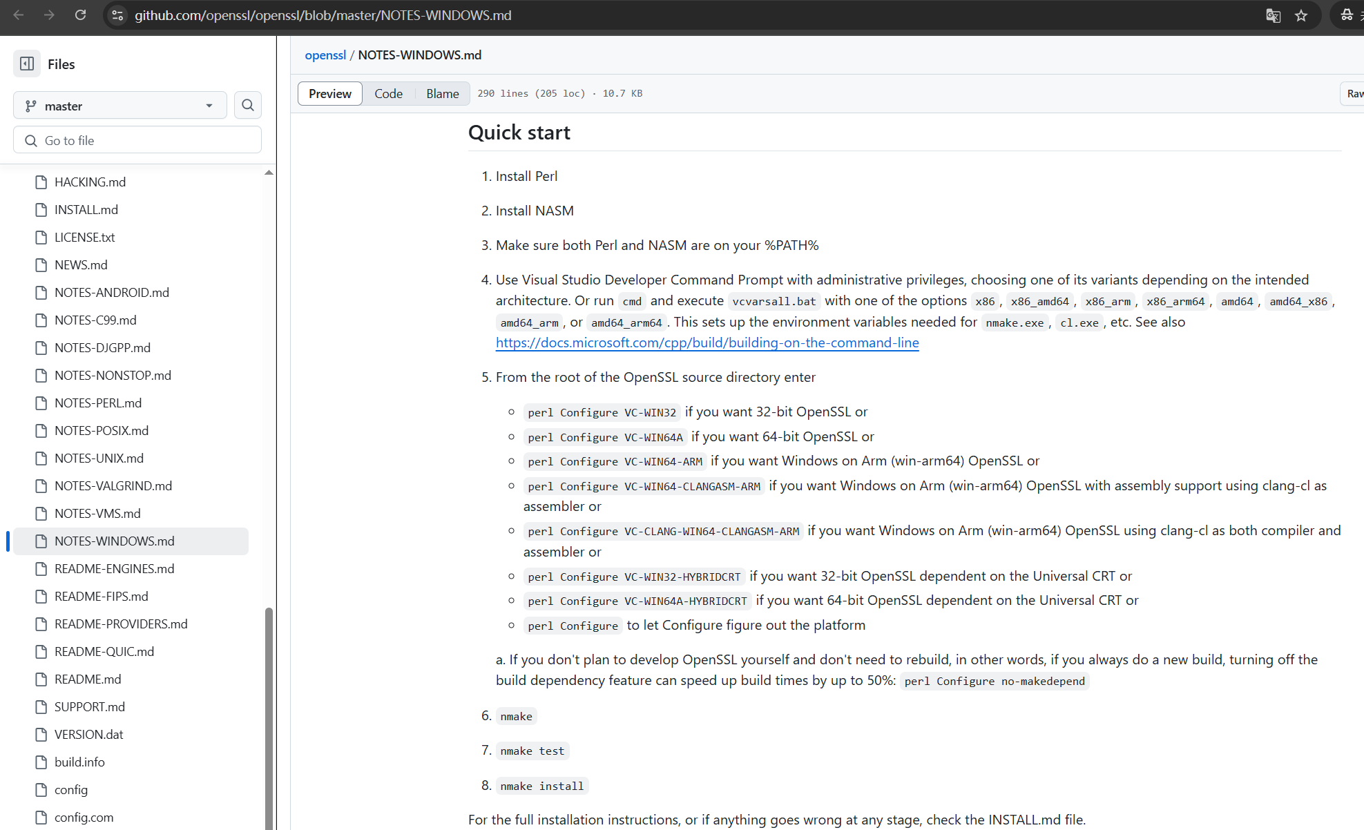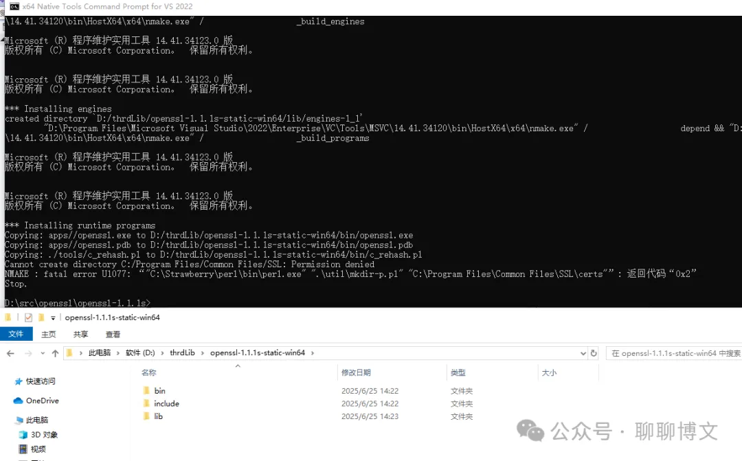 perl Configure VC-WIN32 no-shared --prefix=D:\thrdLib\openssl nmake nmake test nmake install