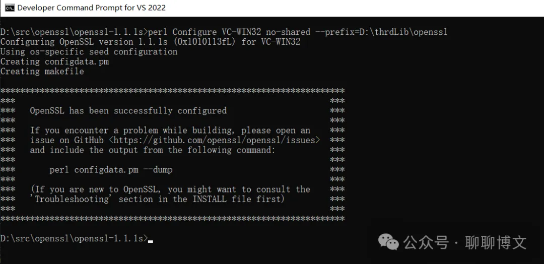 perl Configure VC-WIN64A no-shared --prefix=D:\thrdLib\openssl-1.1.1s-static-win64 nmake nmake test nmake install