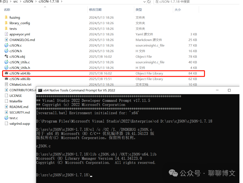 cd D:\src\cJSON\cJSON-1.7.18 cl /c /O2 /I. /DNDEBUG cJSON.c lib cJSON.obj /OUT:cJSON-x64.lib