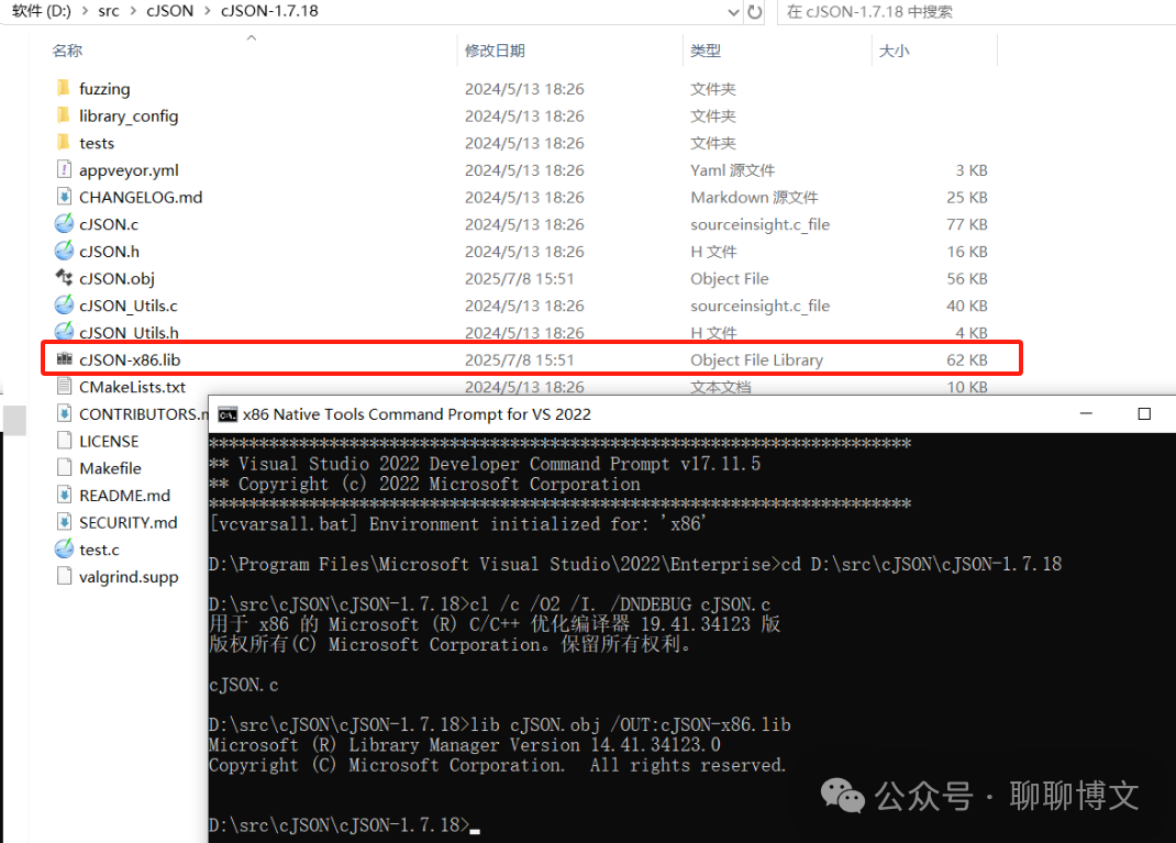 cd D:\src\cJSON\cJSON-1.7.18 cl /c /O2 /I. /DNDEBUG cJSON.c lib cJSON.obj /OUT:cJSON-x86.lib
