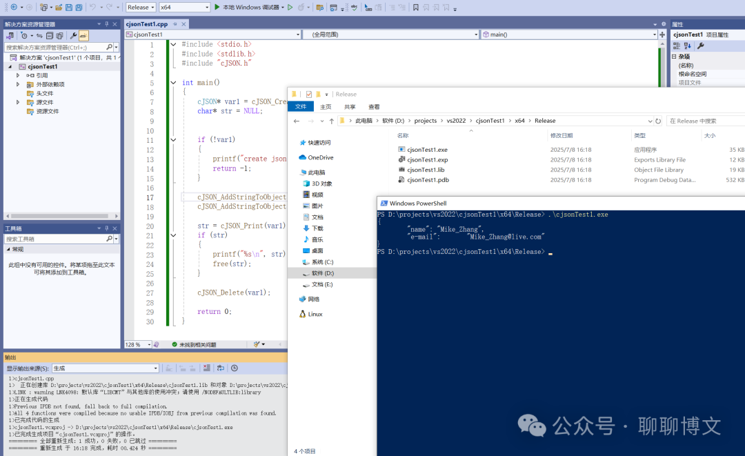 日常开发中,会遇到c/c++生成或解析json的情况,今天整理下windows10环境下使用VS2022编译及使用cJSON静态库的笔记,并提供相关资源下载。