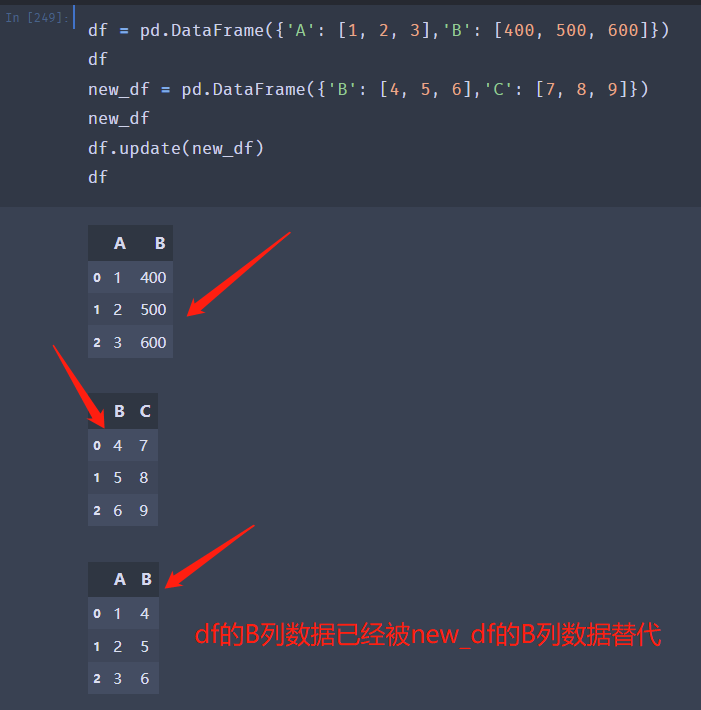由于更新,DataFrame的长度不会增加,只会更新匹配的索引/列标签上的值