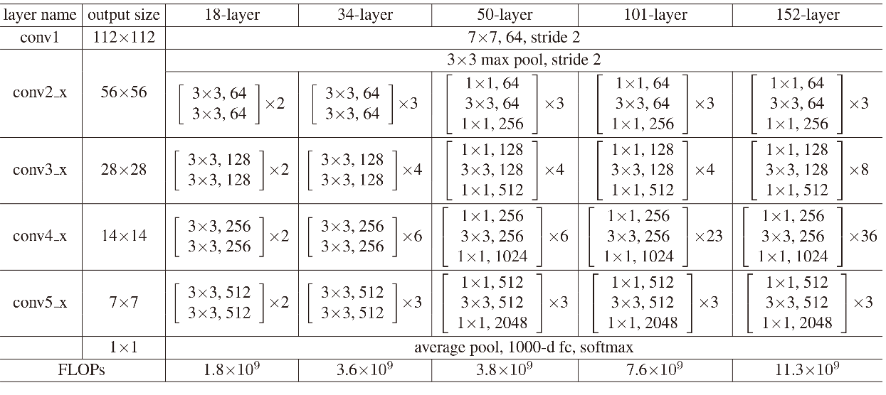 残差网络(如图x所示)的出现解决这个问题。通过不同的残差网络的组合,构成了一系列的ResNet网络结构,如表x所示。