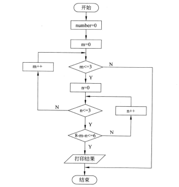 自然语言解决问题:12个彩球中有三个红球,三个白球,六个黑球,取其中八球并要得知有几种搭配方法。该题只需通过将每一种颜色循环并将三种颜色的个数和设为8就能够解决,但由于数量有限,要记得将各颜色数量设上限
