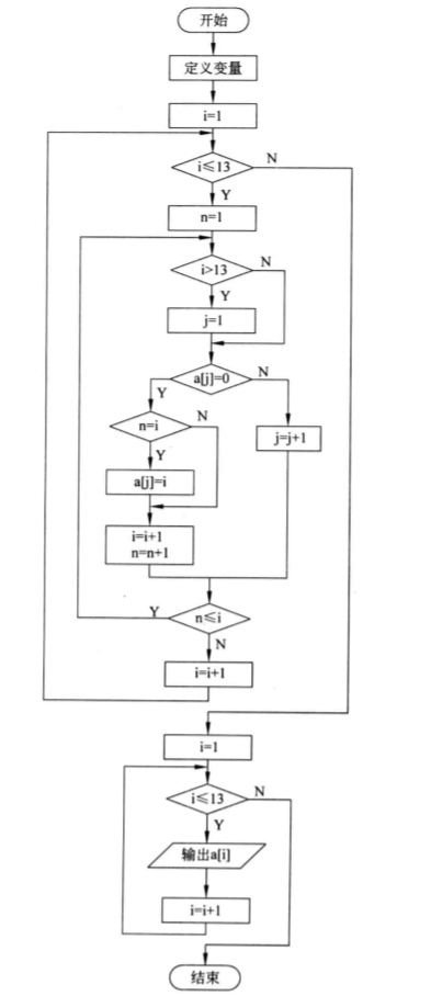 根据问题分析,使用循环结构来实现程序。使用程序将分析过程模拟出来,就可以计算出魔术师手中牌的原始次序。由于有 13 张牌,因此显然要循环 13 次,每次循环时找到与牌序号对应的那个空盒子,因此循环体完成的功能就是找到对应的空盒子将牌存入