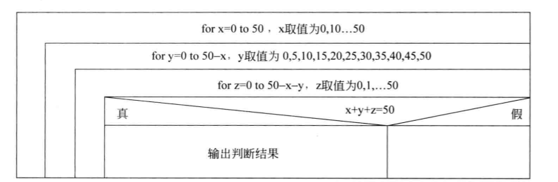 其中,x为兑换的1元硬币钱数,其可能的取值为0,10,20,30,40,503,y为兑换的5角硬币钱数,其可能的取值为0,5,10,15,20,25,30,35,40,,45,50,为兑换的1角硬币钱数其可能的取值为{0,1,...50}。