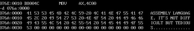 assume ds:data, cs:code data segment str db "assembly language, it's not difficult but tedious" len equ $ - str data ends code segment start: mov ax,data mov ds,ax mov si,offset str mov cx,len s: call strupr loop s mov ax, 4c00h int 21h strupr: mov al,ds:[si] cmp al,61h jb s1 cmp al,7Ah ja s1 and al,11011111B s1: mov ds:[si],al inc si ret code ends end start