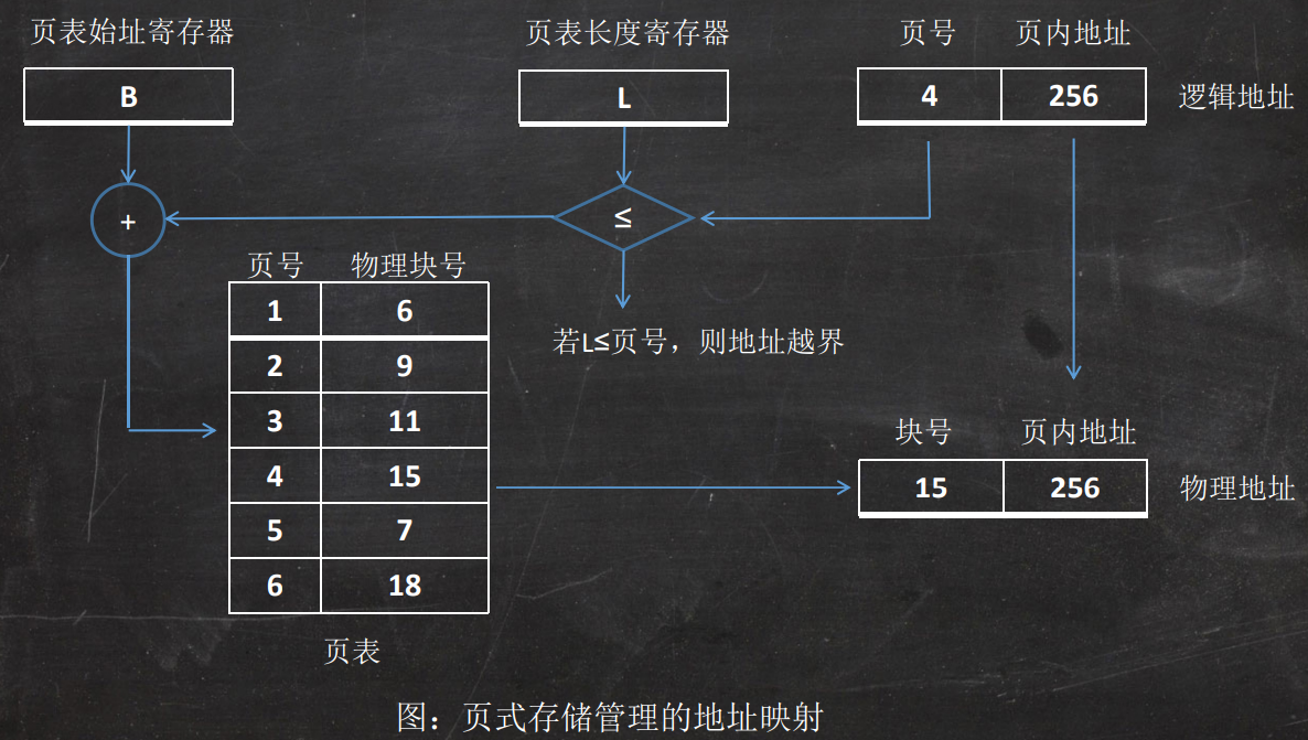 - 块(页框):将主存的空间也划分成与页相同大小的若干个物理块