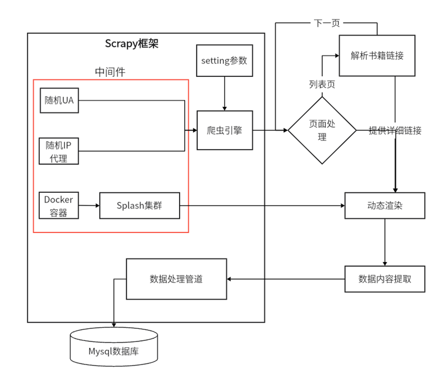 同时针对书籍详细页面存在需要动态渲染的数据内容(如价格),我们利用Docker构建多实例Splash集群,对目标详细页面内容进行自定义脚本注入,实现JavaScript渲染,提升并发处理能力的同时结合Xpath标签定位获取数据内容。