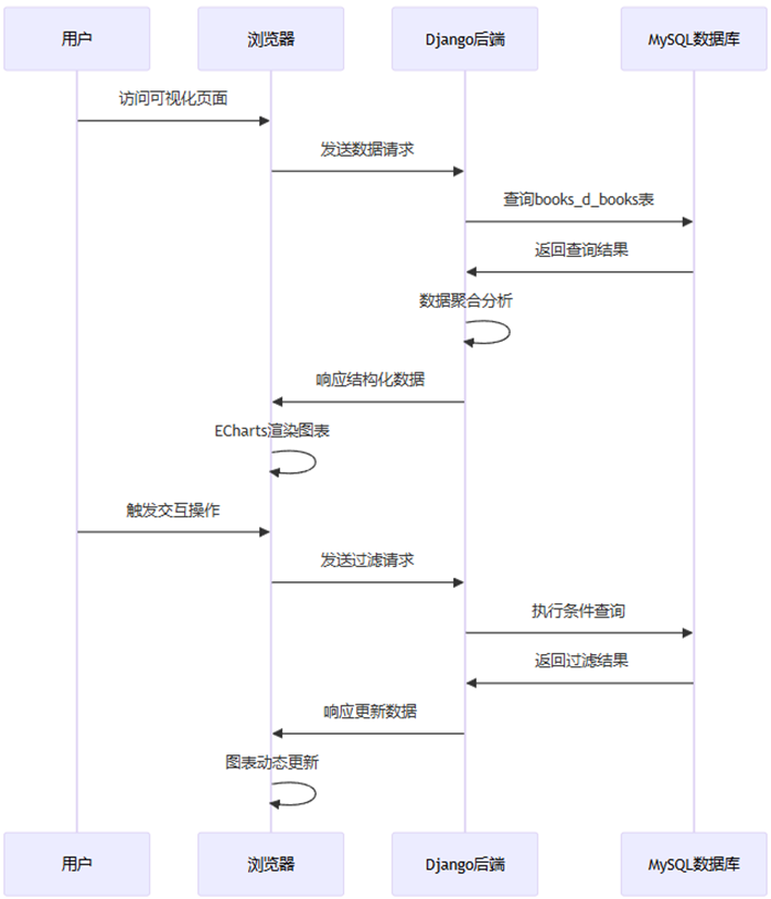 | Echarts | 前端可视化库,将后端提供的结构化数据渲染为交互式图表 | 图表类型丰富,交互性能力强 |