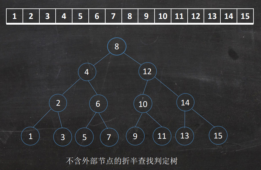 从折半查找的过程来看,可以用一棵二叉树来描述。通常称这个描述折半查找二叉树的过程称为折半查找判定树。