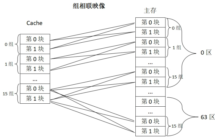 主存的任何区的0组只能存Cache的0组中,1组只能存放到1组中,依此类推。而组内的块可以存入Cache中相同组的任一块中