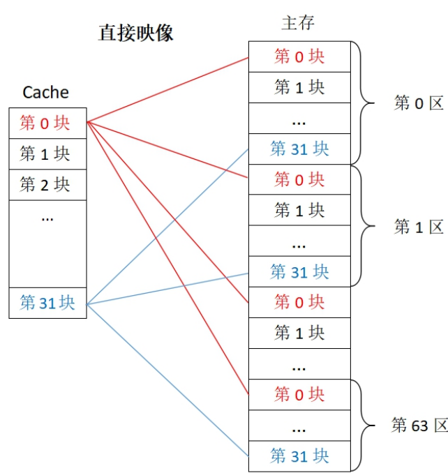 主存的块与Cache块的对应关系是固定的,主存中的块只能存放在Cache存储器的相同块号中。