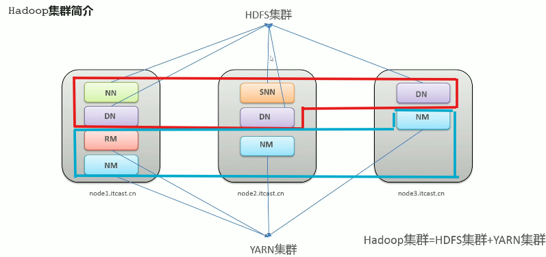 - Hadoop集群是由HDFS集群和YARN集群组成