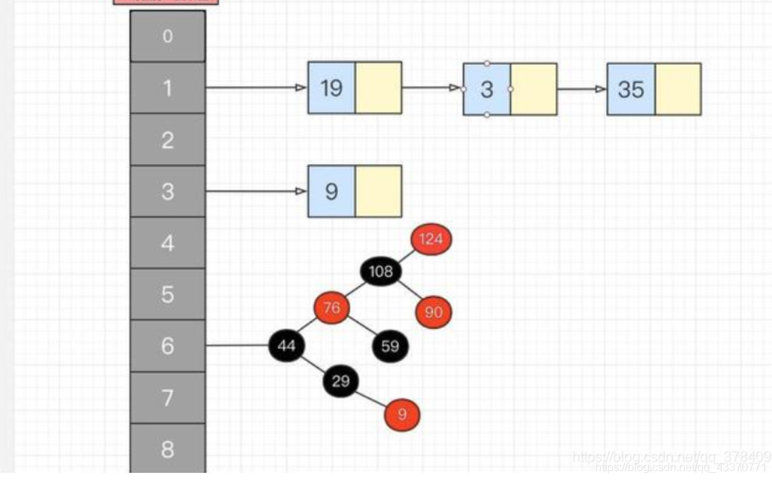 * JDK8.0之后 数组+链表+红黑树(链表长度超过8时自动转换成红黑树,减少查找时间)
