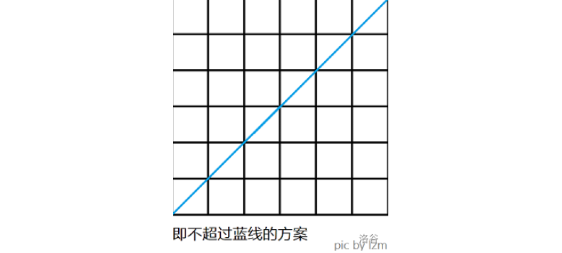 显然,我们要从 \((0,0)\) 走到 \((n,m)\),而且不能走到对角线上。