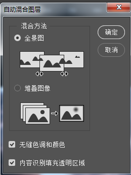选择编辑下拉菜单自动混合图层,全景图