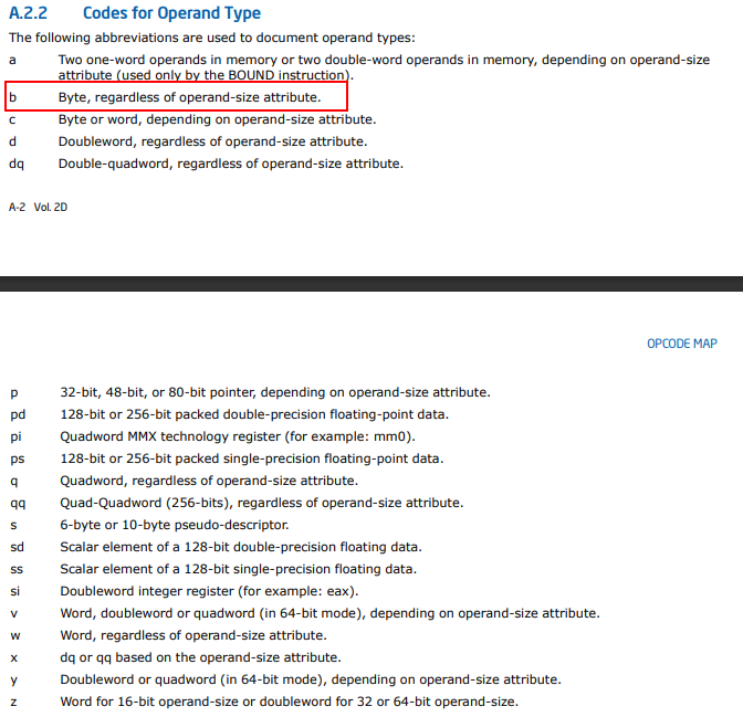 Opcode有1byte/2byte/3byte,以上是1byte的,下面是2byte