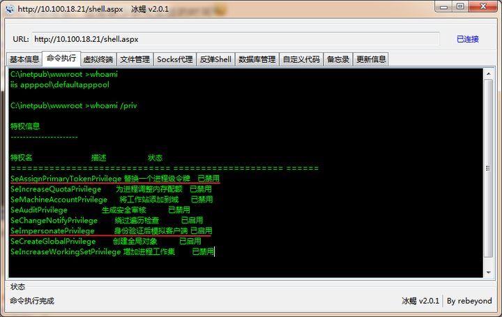 iis或者sqlserver的用户通常具有SeImpersonatePrivilege和SeAssignPrimaryPrivilege权限