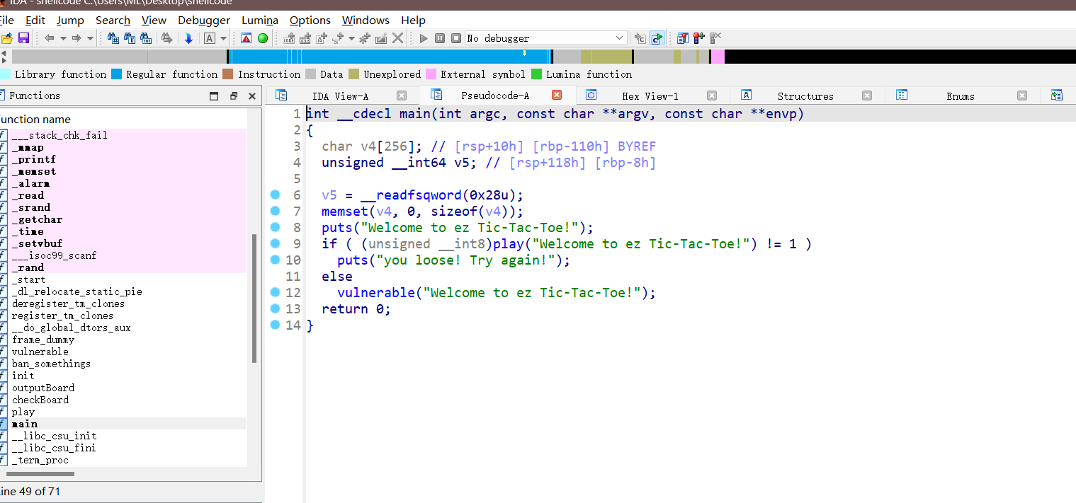 首先是下一个五子棋的游戏,这里运行一下elf文件就可以看出来,下完后来到写shellcode的地方。
