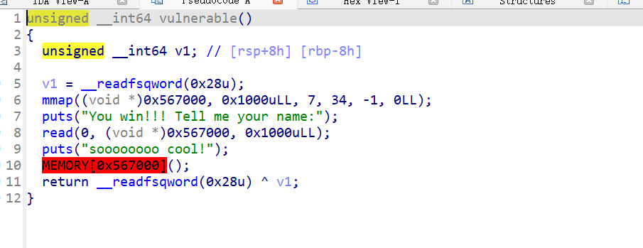 很简单的orw,写完后发现本地的flag可以打开,远程的flag却没有回显,猜测是flag名称被改变,利用上面说的函数找到flag的真实名字再进行orw就可以了。